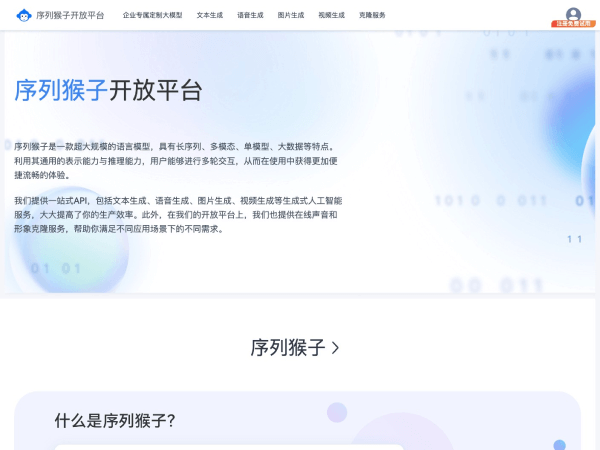 序列猴子是出门问问推出的一款超大规模的语言模型,具有长序列、多模态、单模型、大数据等特点。利用其通用的表示能力与推理能力,用户能够进行多轮交互,从而在使用中获得更加便捷流畅的体验。